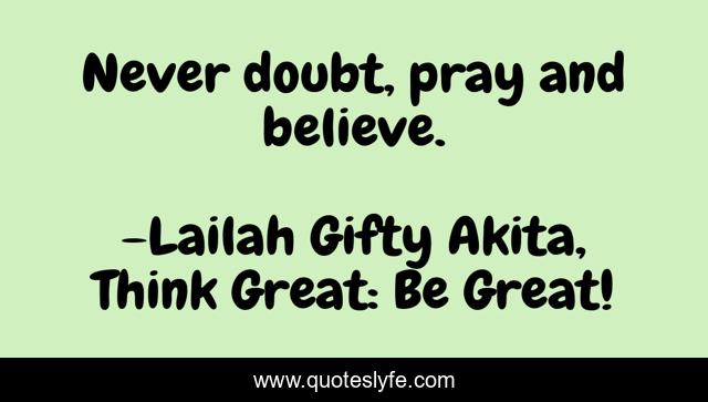 "Lailah Gifty Akita, Think Great: Be Great! Quotes." Quoteslyfe.com, 2025. Mon. 08 Dec. 2025. <https://www.quoteslyfe.com/quote/Never-doubt-pray-and-believe-84329>.