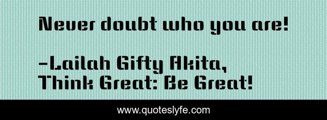 "Lailah Gifty Akita, Think Great: Be Great! Quotes." Quoteslyfe.com, 2025. Mon. 08 Dec. 2025. <https://www.quoteslyfe.com/quote/Never-doubt-who-you-are-95164>.