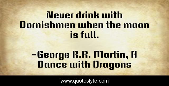"George R.R. Martin, A Dance with Dragons Quotes." Quoteslyfe.com, 2025. Fri. 05 Dec. 2025. <https://www.quoteslyfe.com/quote/Never-drink-with-Dornishmen-when-the-moon-234074>.