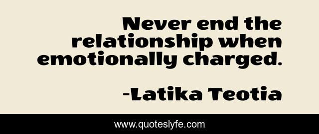 This page presents the quote "Never end the relationship when emotionally charged.". Author of this quote is Latika Teotia. .