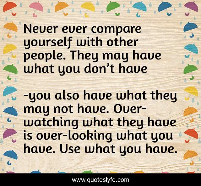 "you also have what they may not have. Over-watching what they have is over-looking what you have. Use what you have. Quotes." Quoteslyfe.com, 2025. Sat. 06 Dec. 2025. <https://www.quoteslyfe.com/quote/Never-ever-compare-yourself-with-other-people-129564>.
