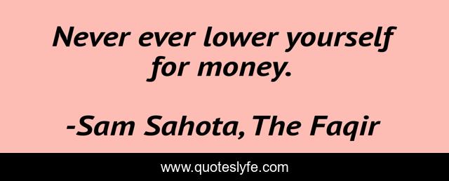 "Sam Sahota, The Faqir Quotes." Quoteslyfe.com, 2025. Sat. 06 Dec. 2025. <https://www.quoteslyfe.com/quote/Never-ever-lower-yourself-for-money-106098>.