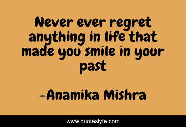 This page presents the quote "Never ever regret anything in life that made you smile in your past". Author of this quote is Anamika Mishra. This quote is about life, love, relationship, affection,.