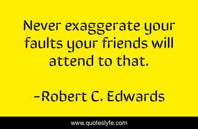 This page presents the quote "Never exaggerate your faults your friends will attend to that.". Author of this quote is Robert C. Edwards. This quote is about friends, friendship,.