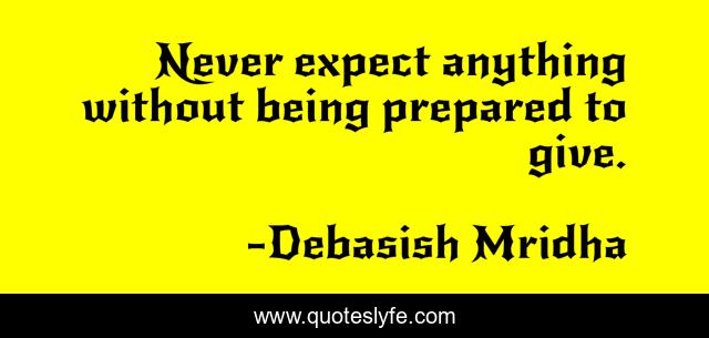 This page presents the quote "Never expect anything without being prepared to give.". Author of this quote is Debasish Mridha. This quote is about debasish, give, giving, mridha, philosophy, debasish-mridha, expectations, expect, inspirational,.