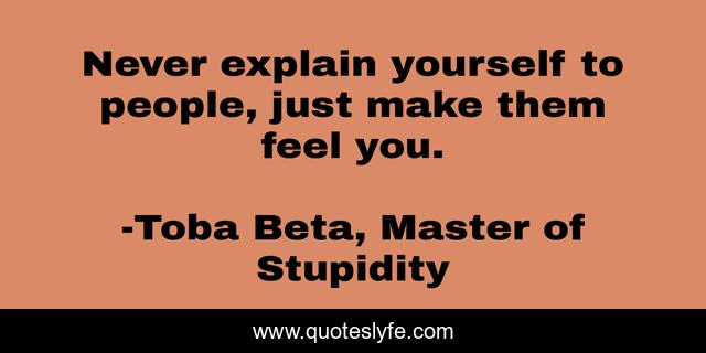 "Toba Beta, Master of Stupidity Quotes." Quoteslyfe.com, 2025. Fri. 05 Dec. 2025. <https://www.quoteslyfe.com/quote/Never-explain-yourself-to-people-just-make-185493>.