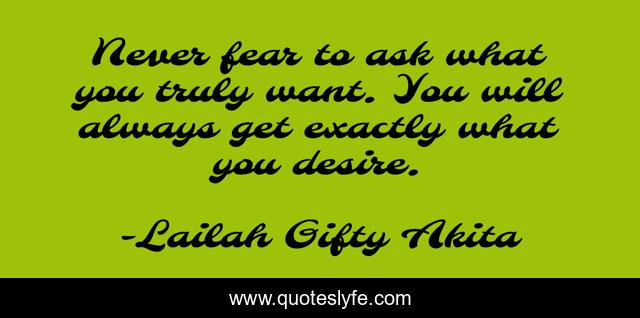 This page presents the quote "Never fear to ask what you truly want. You will always get exactly what you desire.". Author of this quote is Lailah Gifty Akita. This quote is about desire, desire-to-learn, desire-to-live, desired-love,.