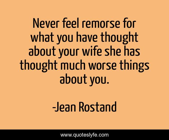 This page presents the quote "Never feel remorse for what you have thought about your wife she has thought much worse things about you.". Author of this quote is Jean Rostand. This quote is about thought, wife,.