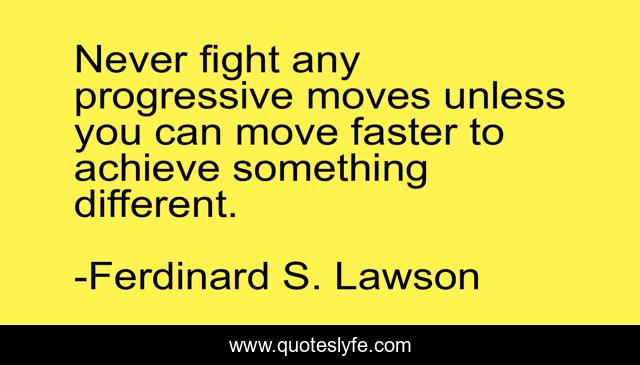 This page presents the quote "Never fight any progressive moves unless you can move faster to achieve something different.". Author of this quote is Ferdinard S. Lawson. This quote is about different, progressive, progression, ferdinard-senyo-lawson, motivation, innovate, fight, make-a-difference, innovation,.