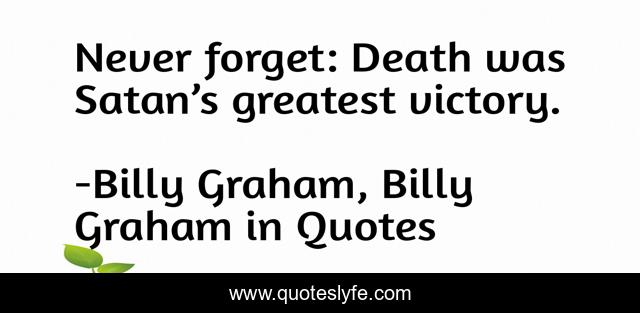 "Billy Graham, Billy Graham in Quotes Quotes." Quoteslyfe.com, 2025. Fri. 05 Dec. 2025. <https://www.quoteslyfe.com/quote/Never-forget-Death-was-Satan-s-greatest-152526>.