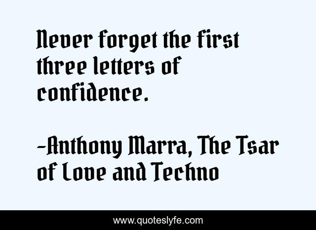 This page presents the quote "Never forget the first three letters of confidence.". Author of this quote is Anthony Marra, The Tsar of Love and Techno. .