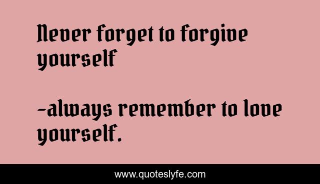 "always remember to love yourself. Quotes." Quoteslyfe.com, 2025. Sat. 06 Dec. 2025. <https://www.quoteslyfe.com/quote/Never-forget-to-forgive-yourself-74594>.