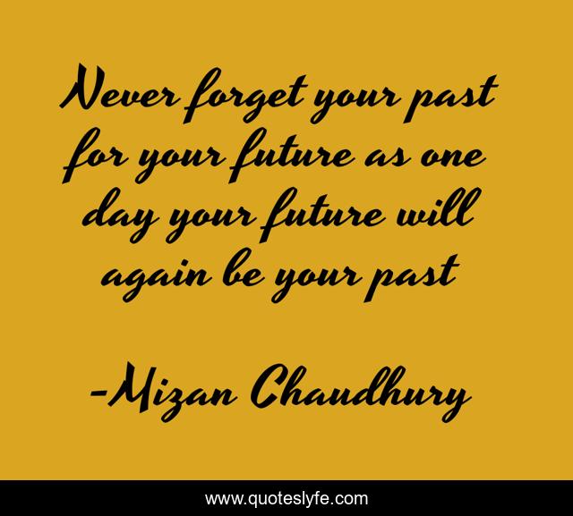 This page presents the quote "Never forget your past for your future as one day your future will again be your past". Author of this quote is Mizan Chaudhury. This quote is about focussed, prosperity, honesty, humble, character, loyalty, goodtimes, reality, past,.