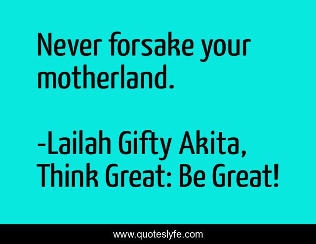 "Lailah Gifty Akita, Think Great: Be Great! Quotes." Quoteslyfe.com, 2025. Tue. 09 Dec. 2025. <https://www.quoteslyfe.com/quote/Never-forsake-your-motherland-200840>.