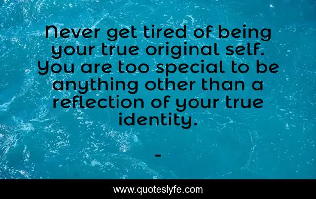 This page presents the quote "Never get tired of being your true original self. You are too special to be anything other than a reflection of your true identity.". Author of this quote is . This quote is about edmond-mbiaka, be-who-you-reuly-are, your-true-identity, original-self, your-true-self,.