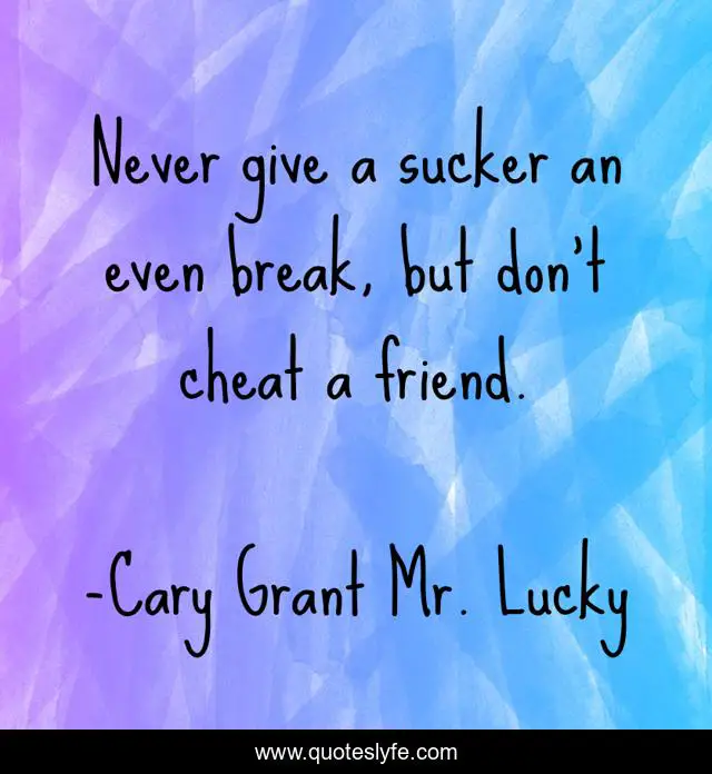 "Cary Grant Mr. Lucky Quotes." Quoteslyfe.com, 2025. Fri. 05 Dec. 2025. <https://www.quoteslyfe.com/quote/Never-give-a-sucker-an-even-break-98243>.