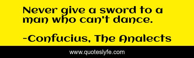 This page presents the quote "Never give a sword to a man who can't dance.". Author of this quote is Confucius, The Analects. This quote is about enthusiasm, clumsiness, grace, inspirational,.