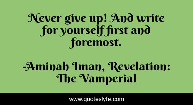 "Aminah Iman, Revelation: The Vamperial Quotes." Quoteslyfe.com, 2025. Fri. 05 Dec. 2025. <https://www.quoteslyfe.com/quote/Never-give-up-And-write-for-yourself-43732>.