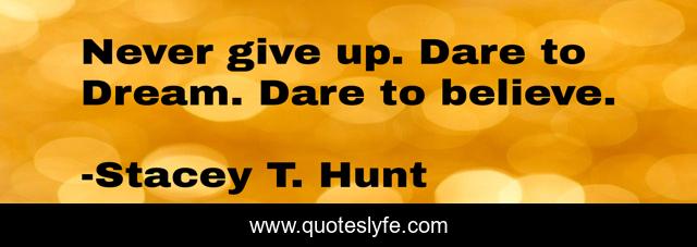 "Stacey T. Hunt Quotes." Quoteslyfe.com, 2025. Mon. 08 Dec. 2025. <https://www.quoteslyfe.com/quote/Never-give-up-Dare-to-Dream-Dare-101284>.