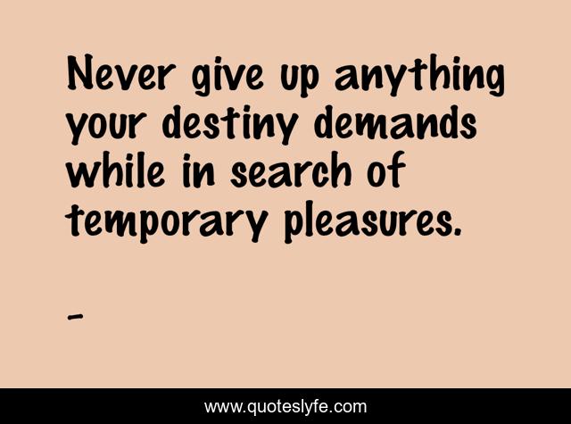 Never give up anything your destiny demands while in search of temporary pleasures.