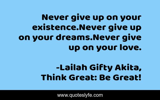 "Lailah Gifty Akita, Think Great: Be Great! Quotes." Quoteslyfe.com, 2025. Sun. 07 Dec. 2025. <https://www.quoteslyfe.com/quote/Never-give-up-on-your-existence-Never-97286>.