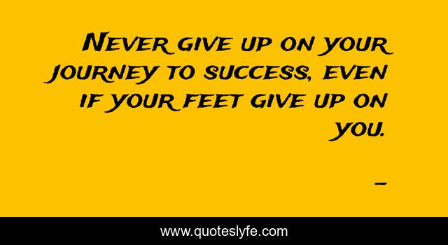 This page presents the quote "Never give up on your journey to success, even if your feet give up on you.". Author of this quote is . This quote is about the-journey-of-success, never-give-up-on-your-journey, edmond-mbiaka, the-journey-to-success, your-journey-to-success, never-give-up-on-yourself,.