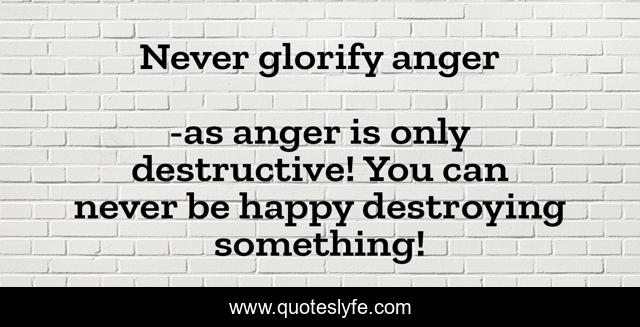 "as anger is only destructive! You can never be happy destroying something! Quotes." Quoteslyfe.com, 2025. Sat. 06 Dec. 2025. <https://www.quoteslyfe.com/quote/Never-glorify-anger-161660>.