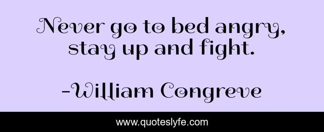 This page presents the quote "Never go to bed angry, stay up and fight.". Author of this quote is William Congreve. This quote is about angry, bed, fight,.