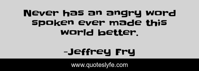This page presents the quote "Never has an angry word spoken ever made this world better.". Author of this quote is Jeffrey Fry. This quote is about made, word, spoken, angry, better, world, ever,.