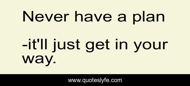 This page presents the quote "Never have a plan". Author of this quote is it'll just get in your way.. .