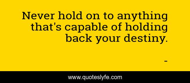 Never hold on to anything that's capable of holding back your destiny.