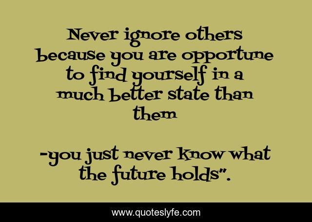 This page presents the quote "Never ignore others because you are opportune to find yourself in a much better state than them". Author of this quote is you just never know what the future holds”.. .