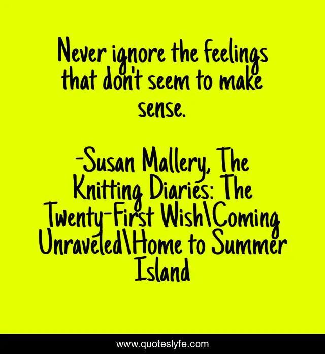 "Susan Mallery, The Knitting Diaries: The Twenty-First WishComing UnraveledHome to Summer Island Quotes." Quoteslyfe.com, 2025. Fri. 05 Dec. 2025. <https://www.quoteslyfe.com/quote/Never-ignore-the-feelings-that-don-t-172158>.