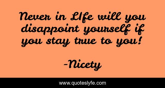 This page presents the quote "Never in LIfe will you disappoint yourself if you stay true to you!". Author of this quote is Nicety. This quote is about life, love, affection, inspirational, smile, enthusiasm, happiness,.