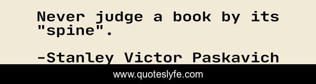 "Stanley Victor Paskavich Quotes." Quoteslyfe.com, 2025. Sun. 07 Dec. 2025. <https://www.quoteslyfe.com/quote/Never-judge-a-book-by-its-spine-254870>.
