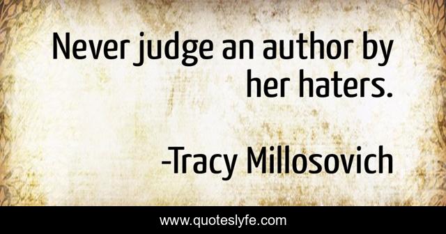 This page presents the quote "Never judge an author by her haters.". Author of this quote is Tracy Millosovich. This quote is about love, author, judgement, authors, haters, aturhot, affection,.