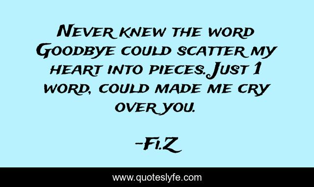 This page presents the quote "Never knew the word Goodbye could scatter my heart into pieces. Just 1 word, could made me cry over you.". Author of this quote is Fi.Z. This quote is about heartache, life, lonely, love, romance-love, quote, cry, sadness, hurt,.