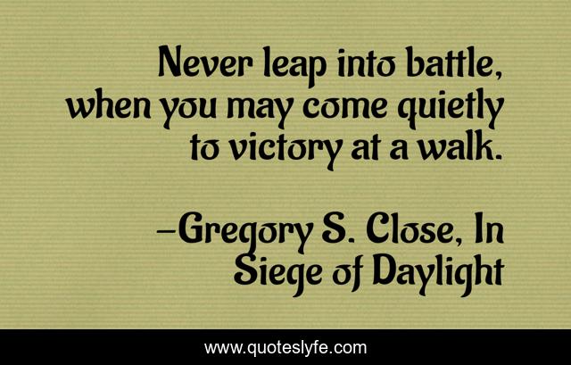 "Gregory S. Close, In Siege of Daylight Quotes." Quoteslyfe.com, 2025. Mon. 08 Dec. 2025. <https://www.quoteslyfe.com/quote/Never-leap-into-battle-when-you-may-13457>.