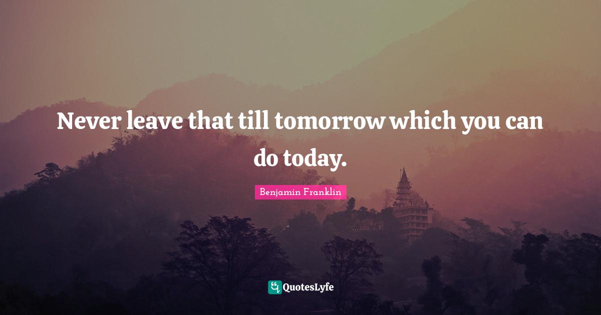 "Benjamin Franklin Quotes." Quoteslyfe.com, 2026. Tue. 13 Jan. 2026. <https://www.quoteslyfe.com/quote/Never-leave-that-till-tomorrow-which-you-278120>.