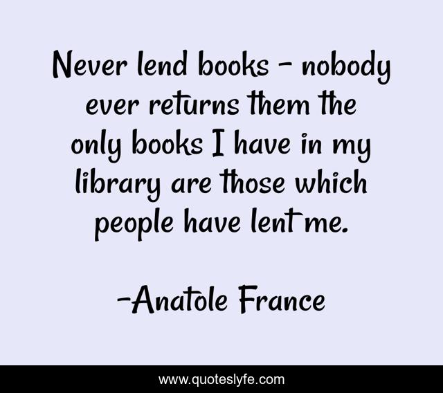 "Anatole France Quotes." Quoteslyfe.com, 2025. Fri. 05 Dec. 2025. <https://www.quoteslyfe.com/quote/Never-lend-books-nobody-ever-returns-them-260830>.