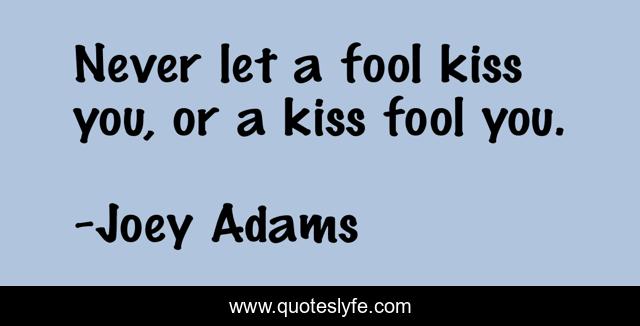 This page presents the quote "Never let a fool kiss you, or a kiss fool you.". Author of this quote is Joey Adams. This quote is about fool, kiss,.