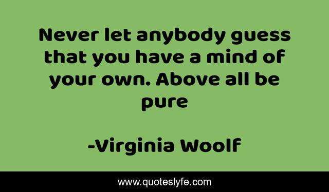 This page presents the quote "Never let anybody guess that you have a mind of your own. Above all be pure". Author of this quote is Virginia Woolf. This quote is about enthusiasm, inspirational,.
