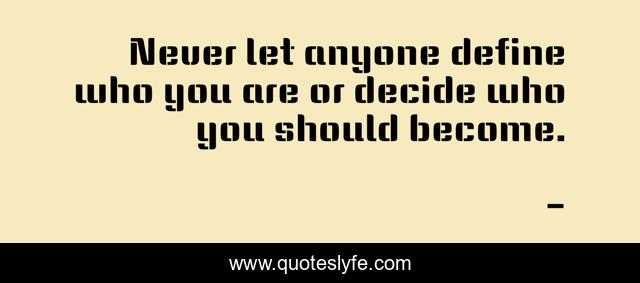 This page presents the quote "Never let anyone define who you are or decide who you should become.". Author of this quote is . This quote is about don-t-let-any-one-define-you, edmond-mbiaka, define-yourself, always-decide-for-yourself,.