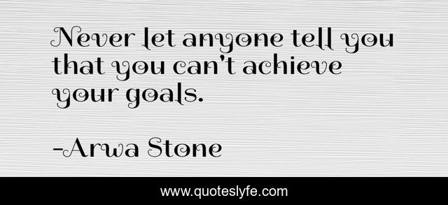 This page presents the quote "Never let anyone tell you that you can't achieve your goals.". Author of this quote is Arwa Stone. This quote is about quote, achievement, happiness,.
