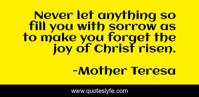 This page presents the quote "Never let anything so fill you with sorrow as to make you forget the joy of Christ risen.". Author of this quote is Mother Teresa. This quote is about faith, life, joy, sorrow, wisdom, religion, truth, god, resurrection,.