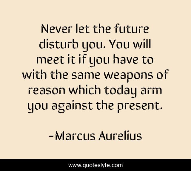 This page presents the quote "Never let the future disturb you. You will meet it if you have to with the same weapons of reason which today arm you against the present.". Author of this quote is Marcus Aurelius. .