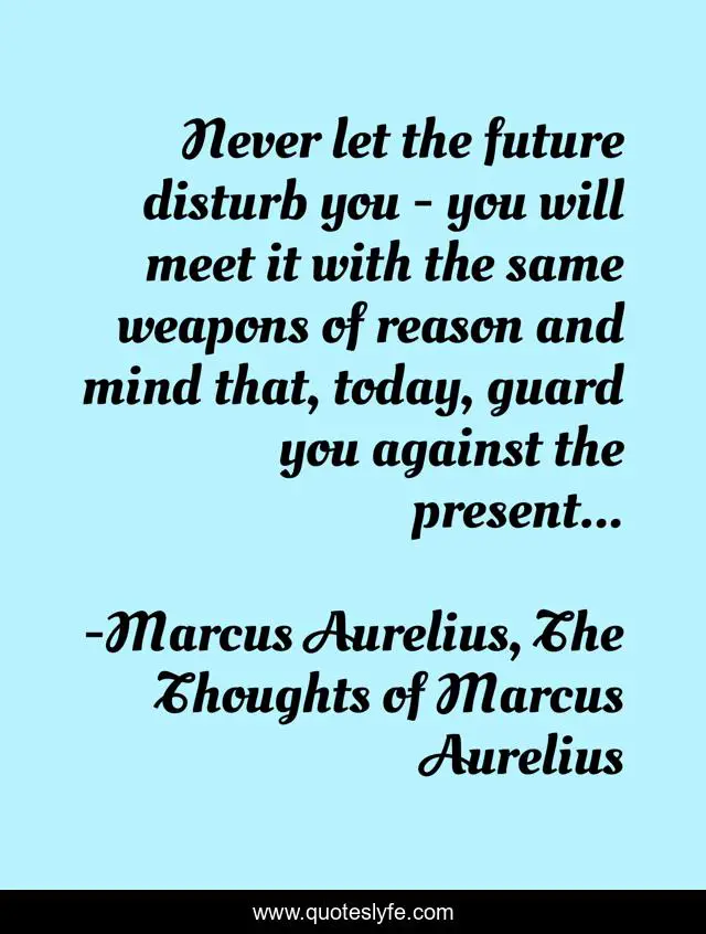 "Marcus Aurelius, The Thoughts of Marcus Aurelius Quotes." Quoteslyfe.com, 2025. Sat. 06 Dec. 2025. <https://www.quoteslyfe.com/quote/Never-let-the-future-disturb-you-you-172696>.