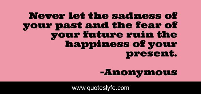 This page presents the quote "Never let the sadness of your past and the fear of your future ruin the happiness of your present.". Author of this quote is Anonymous. This quote is about past, future, happiness, present,.