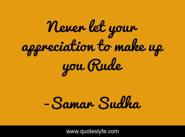 This page presents the quote "Never let your appreciation to make up you Rude". Author of this quote is Samar Sudha. This quote is about appreciation, rude,.
