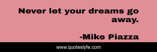This page presents the quote "Never let your dreams go away.". Author of this quote is Mike Piazza. This quote is about your dreams, away,.